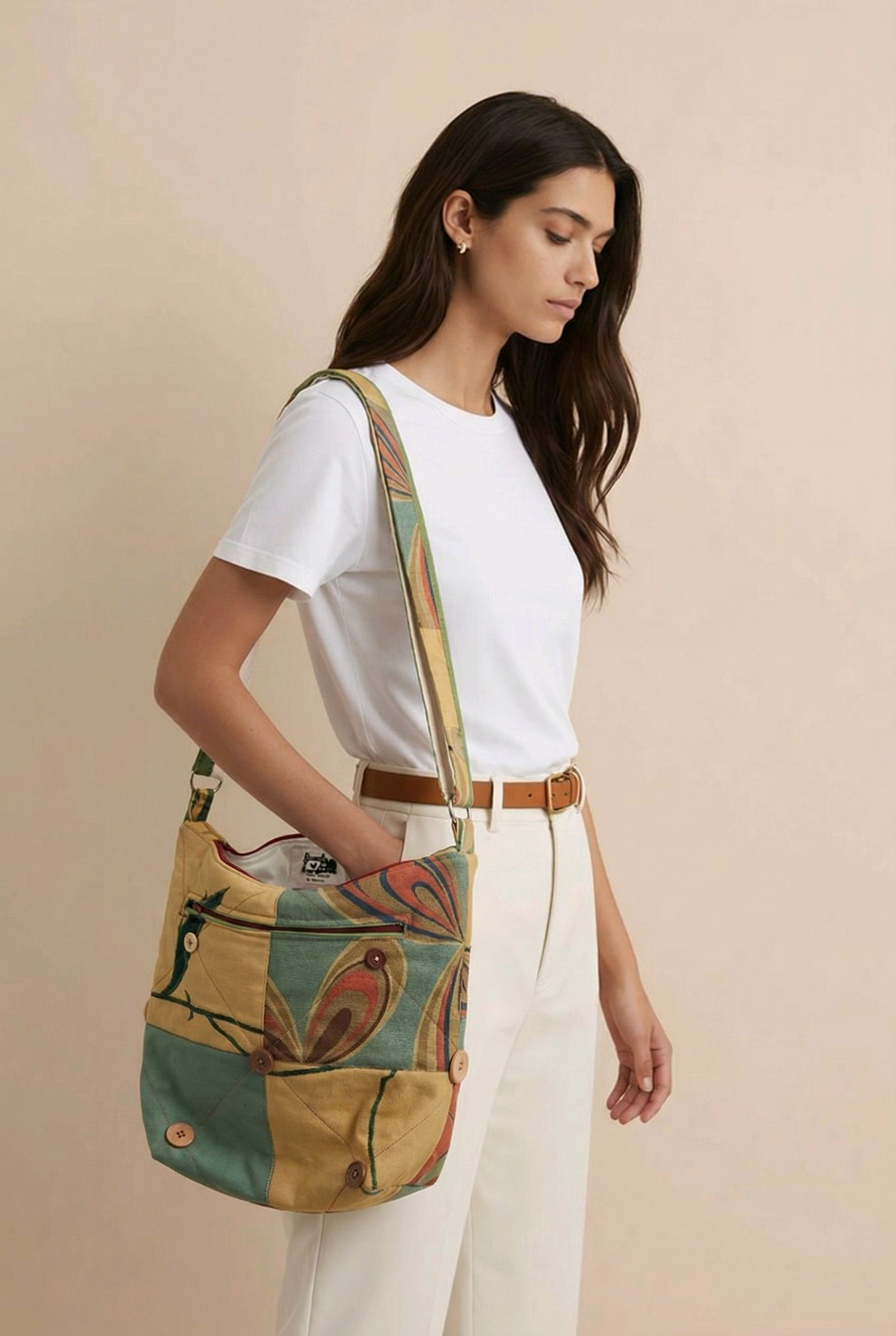 The Harlequin Shoulder Bag is another of our Rainbow Range designs, it has an adjustable strap 82-160cm in length. There are 3 pockets, 2 internal and 1 external, giving ample storage for your every day needs.