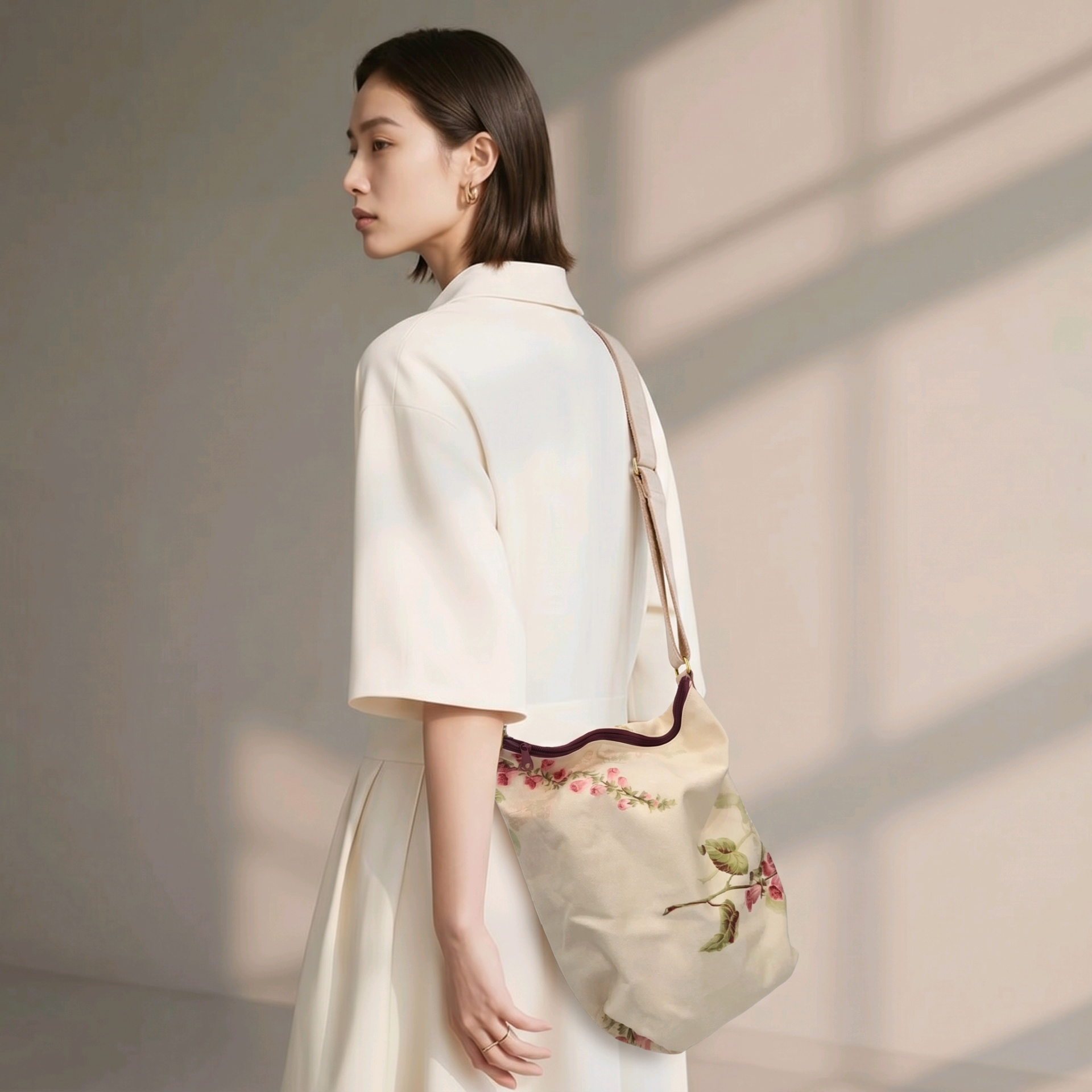 Detailed with a rich burgundy zipper and luxe gold-toned hardware, it’s finished with a soft faux-suede adjustable strap. Perfectly sized for your daily essentials—fits your phone, keys, and even your A5 diary for those moments of countryside inspiration.